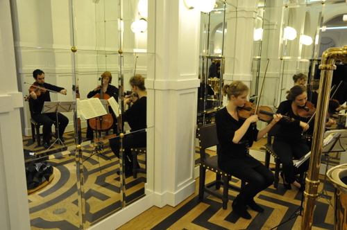 De dag werd op een plezierige wijze voortgezet met een diner in het Groninger Museum. Na een woord van welkom door museumdirecteur Kees van Twist werd door de aanwezigen onder het genot van een strijkje lekker en gezellig gegeten.