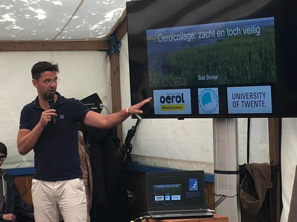 Het Oerolcollege van Bas Borsje ging over de duurzame bescherming van de kust tegen overstromingen. Natuurlijke 'zachte structuren'zoals kwelders en mangrovebossen kunnen de kustgebieden kunnen beschermen. Het college sloot aan bij het expeditieproject Aeolis: Gap The Border van TU Delft MSC Landscape Architecture. Ook zij zien het bouwen met de natuur als een veelbelovende en nieuwe manier van kustbescherming. Het publiek bleef nog lang napraten met Bas Borsje en maker Rene van der Velde.