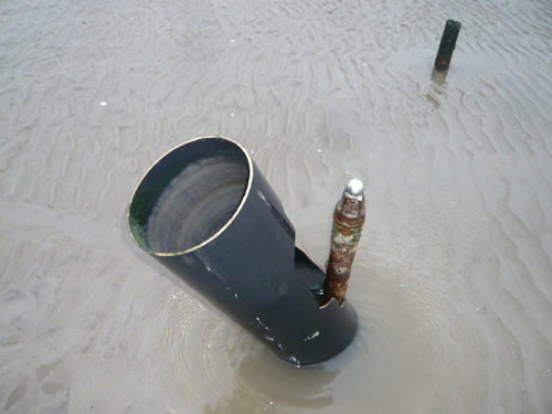 De peilmerken op de wadplaten zijn gegalvaniseerde buizen van zes meter lang, die tot onder het oppervlak in de wadbodem geplaatst werden. Bovenop die buis zit een schroefdop, met daarop een kogel. Die kogel is het eigenlijke merk. De bovenkant van de buis, met het merk, is voorzien van een mantel van pvc. Per meetstation staan drie van die buizen in de grond. Eromheen liggen tegels (ook gevonden door Lammert) die de locatie van de buizen bepalen, zodat de merken met de grondboor kunnen worden 'aangeprikt'. De stations zijn gemarkeerd met een bamboe bakenstok.